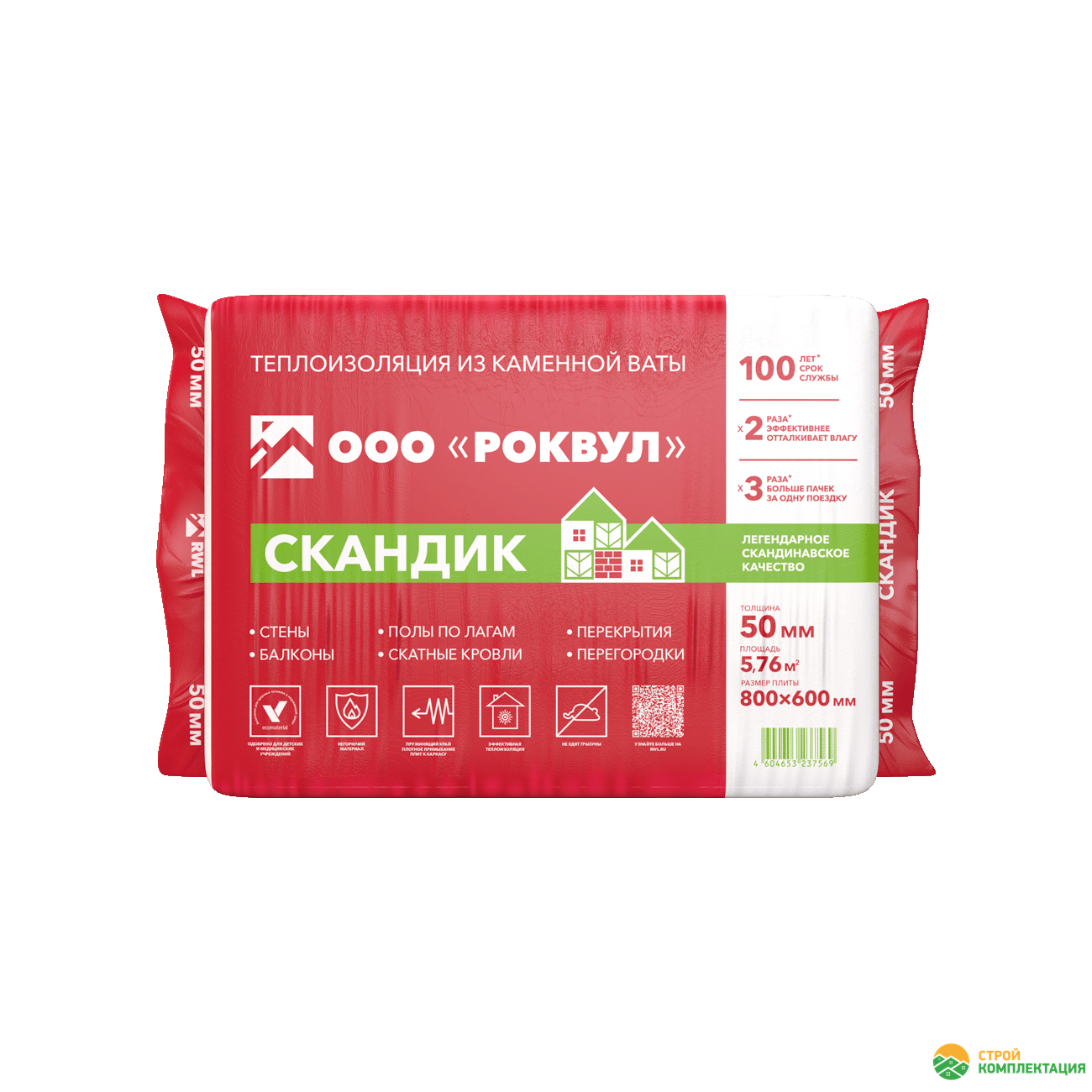 Утеплитель РОКВУЛ СКАНДИК 800х600х50 мм (12 шт; 0,288 куб.м.)