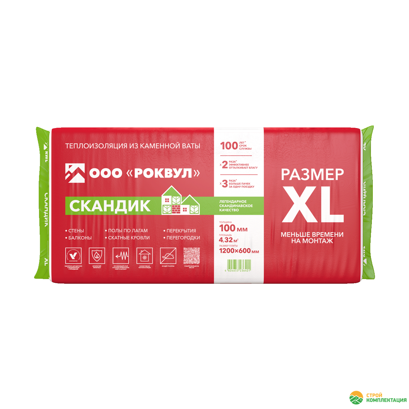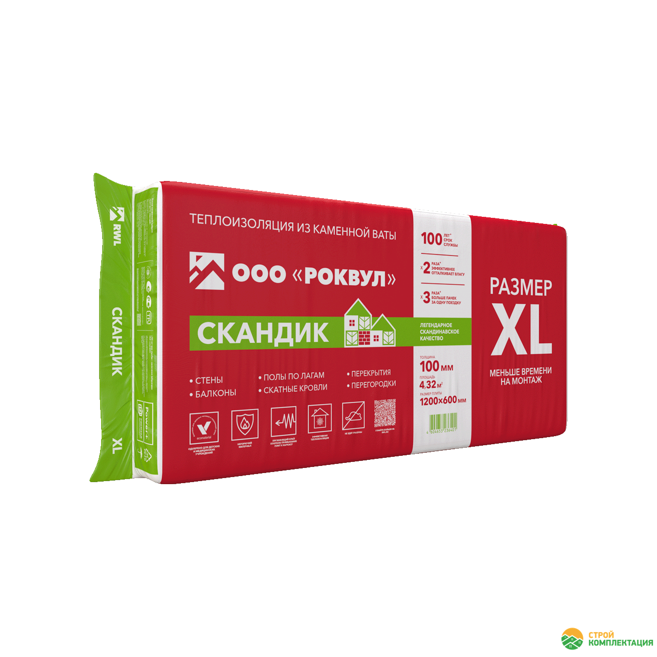 Утеплитель РОКВУЛ СКАНДИК XL 1200х600х100 мм (6 шт; 0,432 куб.м.)