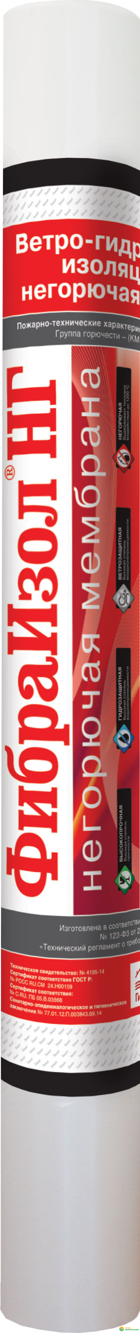 Негорючая ветро‑влагозащитная мембрана для вентилируемых фасадов Фибраизол НГ 1,27х59 м рулон 75м2