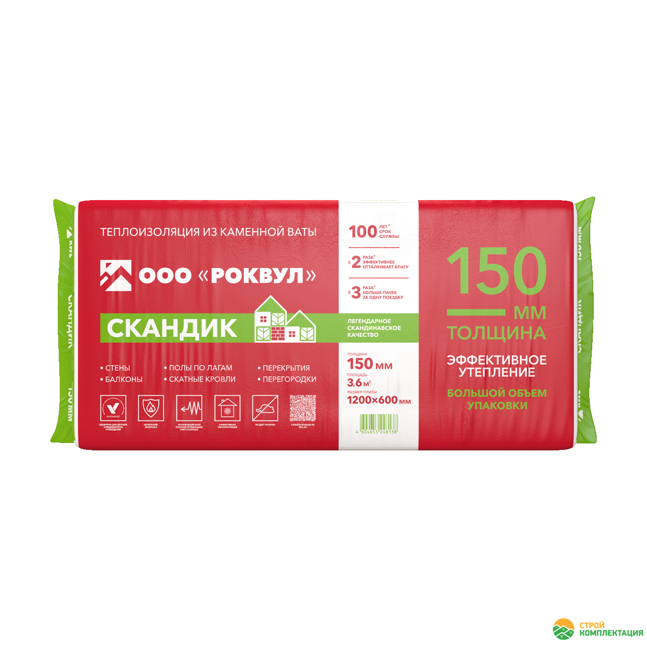 Утеплитель РОКВУЛ СКАНДИК XL 1200х600х150 мм (5 шт; 0,54 куб.м.)