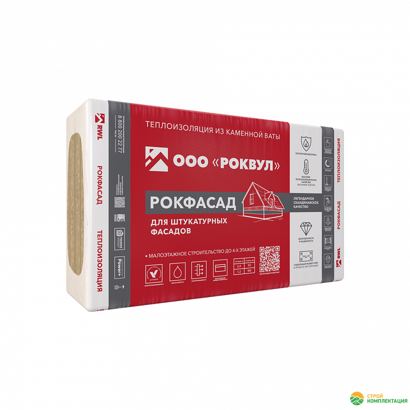 Утеплитель ROCKWOOL РОКФАСАД 1000х600х50 мм (4 шт; 0,12 куб.м.)